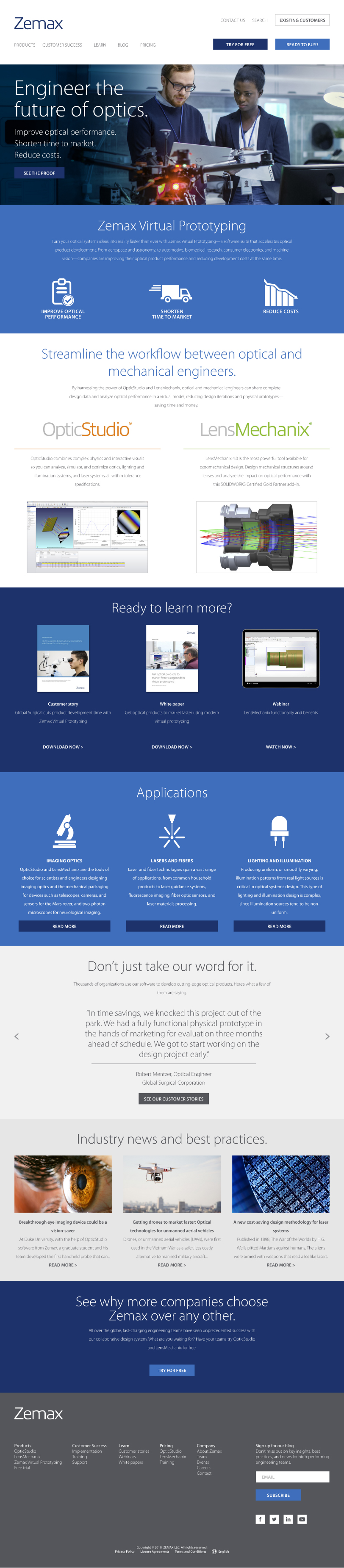 Zemax, a software company specializing in optical product design, sought to elevate its brand and generate leads among a niche audience of highly educated optical engineers and engineering leadership. The existing brand and website needed an overhaul to better support lead generation and reflect the company’s position as a global leader.